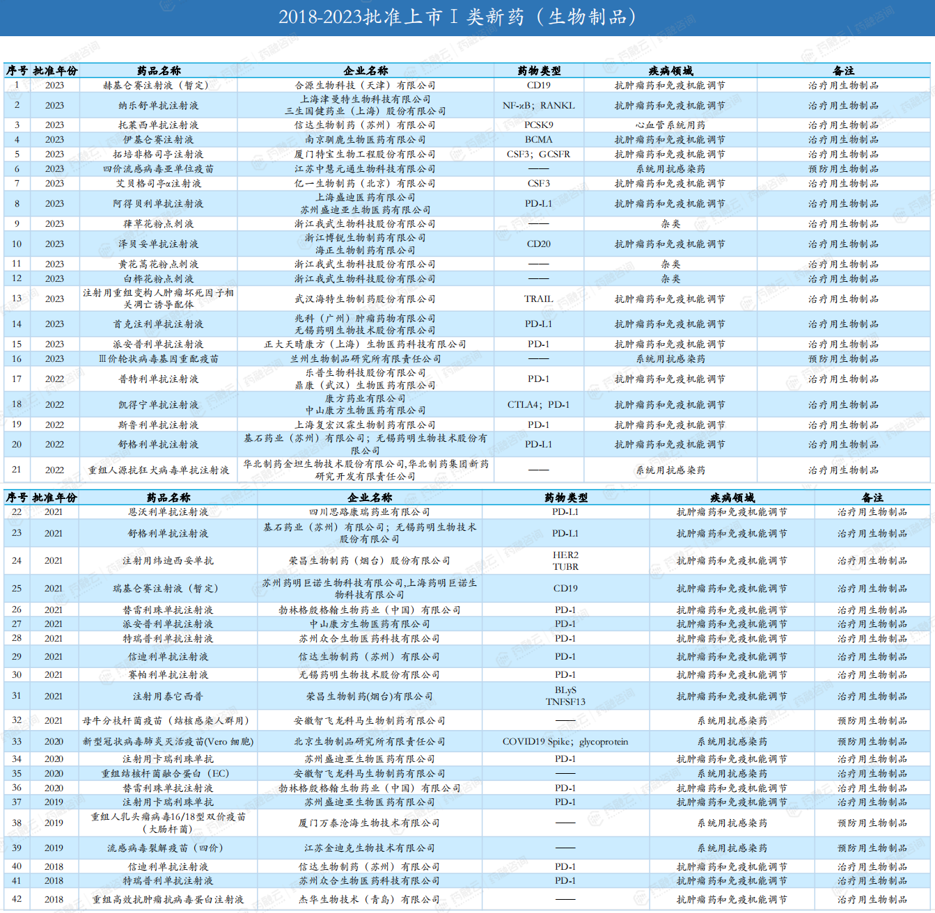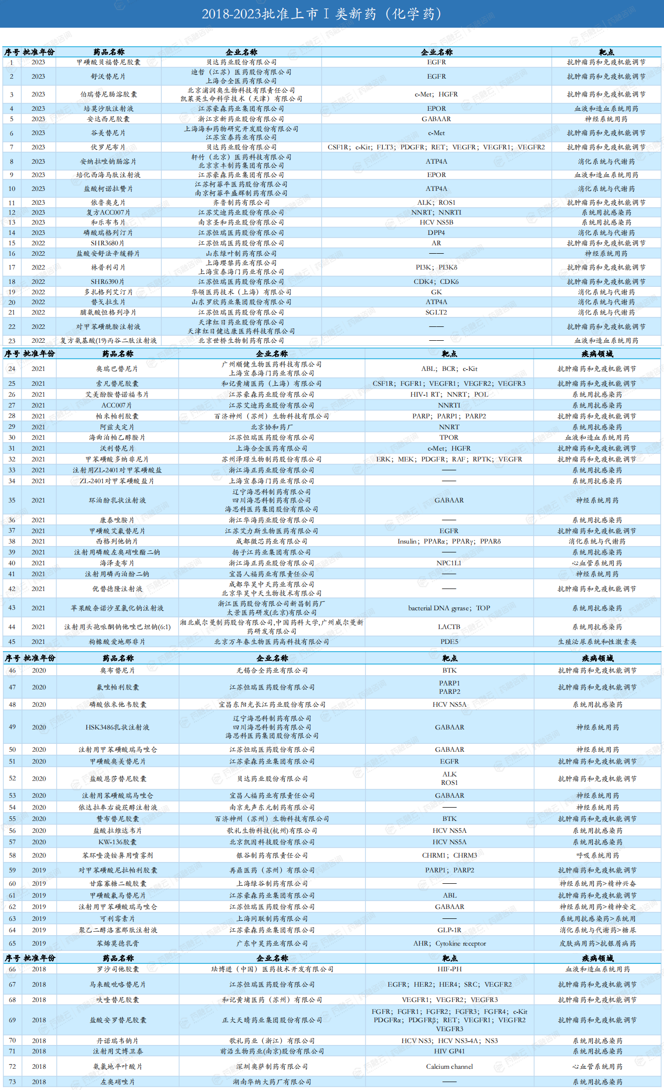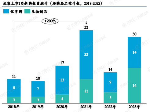 2018-2023年批准上市Ⅰ类新药(化学药/生物制品)