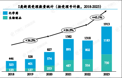 I类新药受理数量爆炸式增长,生物制品与化学药数量几乎持平