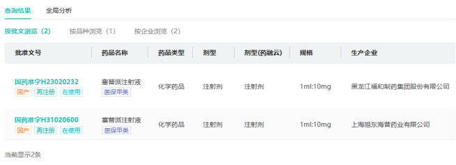 目前前国内已上市的塞替派制剂仅塞替派注射液一种,且仅黑龙江福和制药集团、上海旭东海普药业2家企业拥有生产批文。