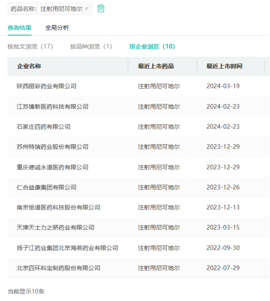 目前,注射用尼可地尔有石家庄四药、仁合益康集团、扬子江药业、北京四环科宝制药等10家企业拥有生产批文,且均已过评。