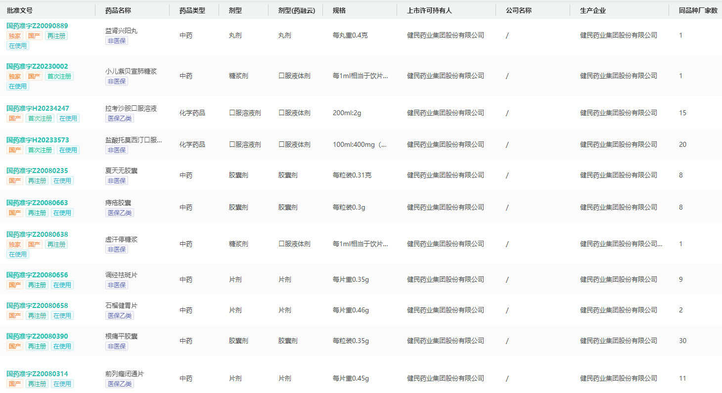 健民集团生产批文查询