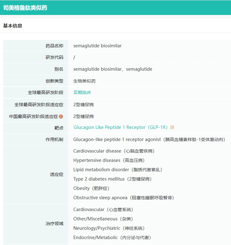 司美格鲁肽在市场上的卓越表现,吸引了众多国内药企纷纷投入仿制研发。目前,已有九源基因、华东医药、博唯生物、四环医药、珠海联邦、齐鲁制药、丽珠集团、石药集团、正大天晴、质肽生物以及倍特药业等超十家药企进入该药物的三期临床阶段,竞争态势激烈,展现出降糖药市场的巨大潜力和广阔前景。