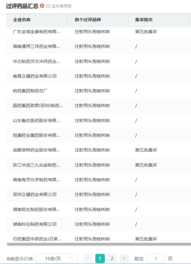 目前,注射用头孢唑林钠已有成都倍特药业、湖南科伦制药、石药集团等超百家药企拥有生产批文。此外,注射用头孢唑林钠有23家药企过评。其中有4家药企的注射用头孢唑林钠进入第5批集采,分别是广东金城金素制药、成都倍特药业、浙江华润三九众益制药、石药集团中诺药业(石家庄)。
