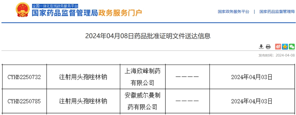 近日,NMPA发布最新一批药品批准证明文件送达信息,其中,注射用头孢唑林钠迎来2家药企同日过评,分别是上海欣峰制药和安徽威尔曼制药。据药融云数据统计,该品种在2022年全国院内市场销售额超13亿元。