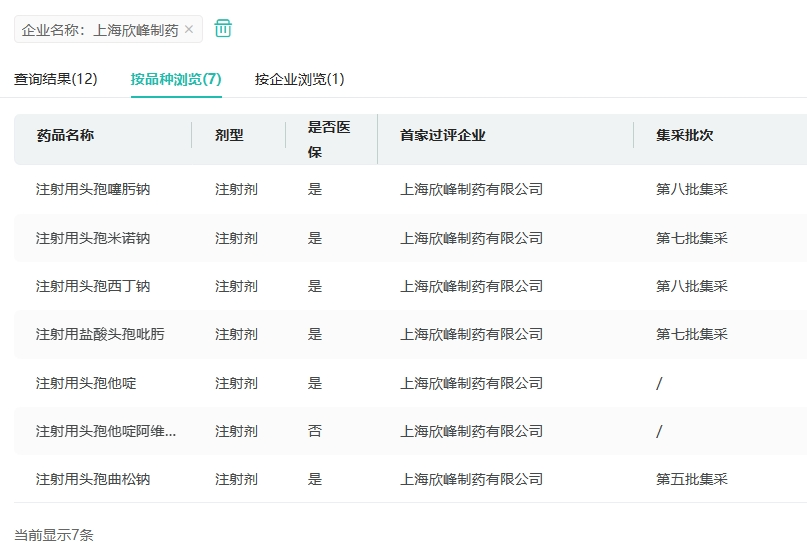 上海欣峰制药在仿制药领域持续深耕,目前已有注射用盐酸头孢吡肟、注射用头孢他啶阿维巴坦钠、注射用头孢米诺钠等7款品种过评。