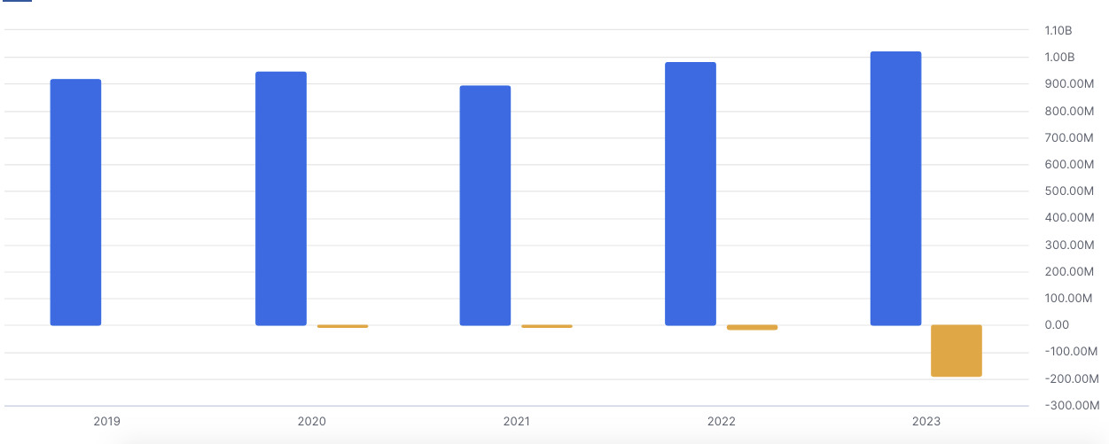 2024年2月28日,欧洲最大的原料药(Active Pharmaceutical Ingredient / API)、中间体兼做CDMO公司之一EuroAPI发布2023年财报。2023年业绩达10.13亿欧元(约合77.80亿人民币),同比是增长了3.8%;但2023财年净亏损为1.90亿欧元,此前的2022年亏损约1500万欧元。