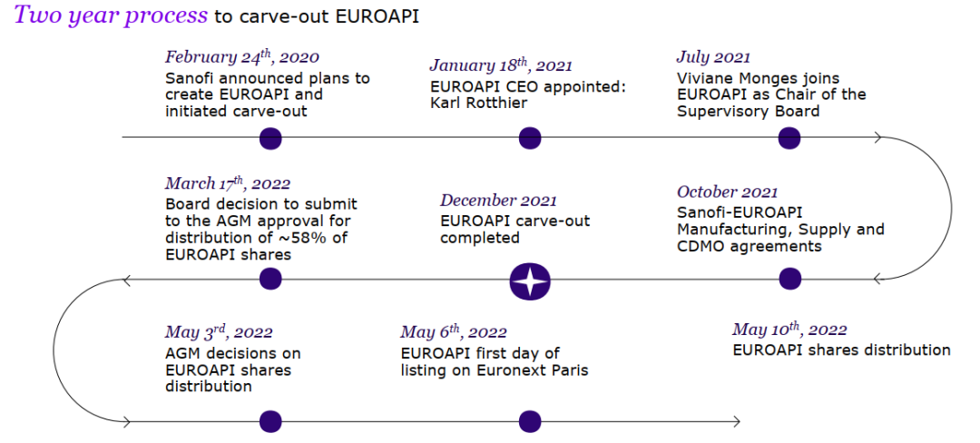 2022年5月1日上市时,EuroAPI拥有约3350名员工,分拆后赛诺菲对Euroapi持股30%,法国French Tech Souveraineté基金(EPIC Bpifrance)此前达成协议,以1.5亿欧元的价格向赛诺菲购买12%的Euroapi股份。公司是独立于Sanofi,但也是长期共同合作共赢的伙伴。