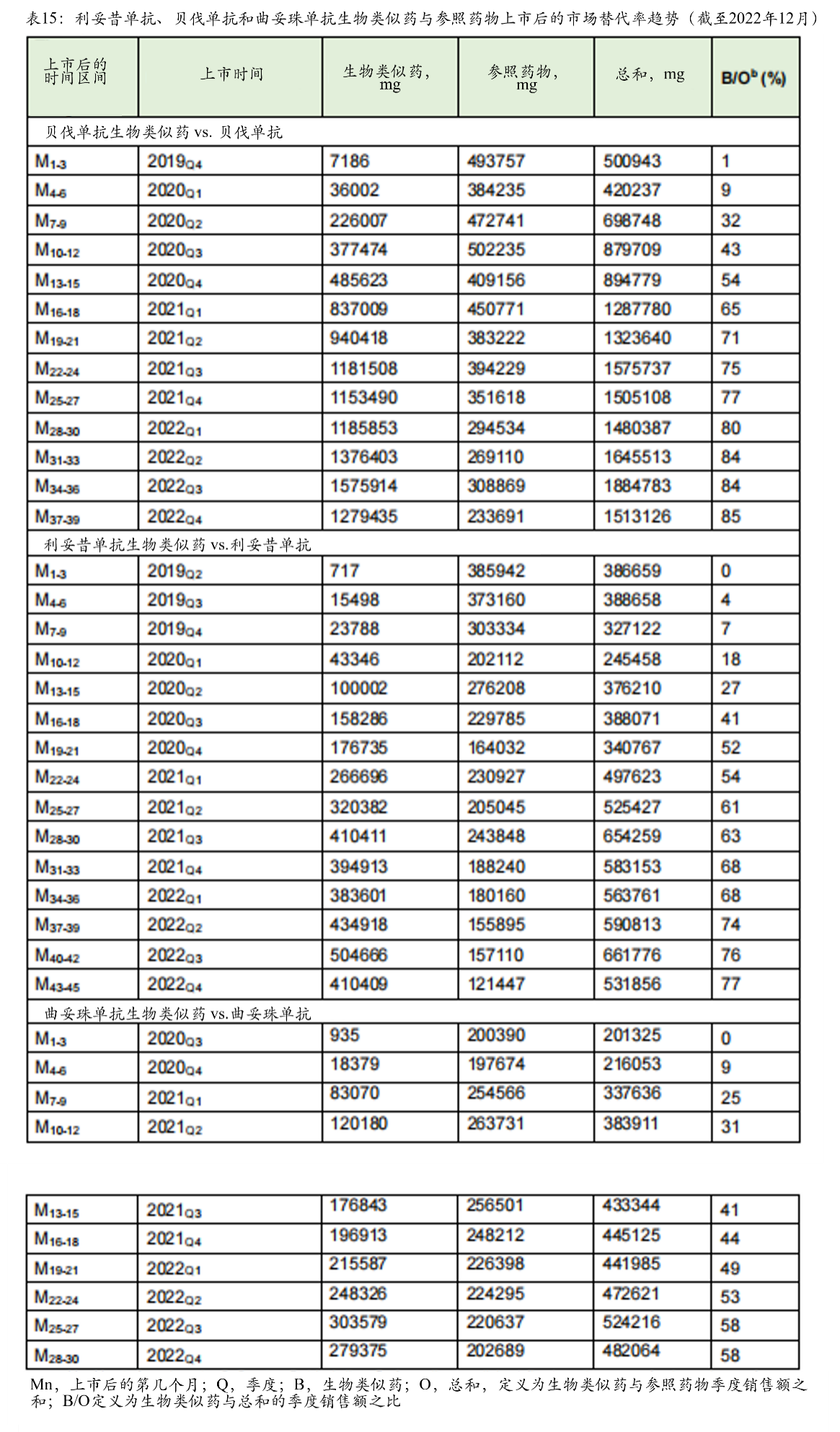 利妥昔单抗、贝伐单抗和曲妥珠单抗生物类似药与参比药物的市场替代率趋势