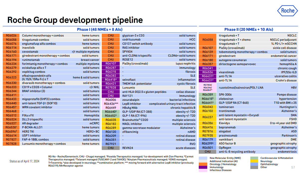 根据财报,自 2023 年第 3 季度以来,罗氏为重点关注影响力大的项目,已终止了 20%的管线。首席执行官Thomas Schinecker在与媒体进行的第一季度财报电话会议上表示,确定优先次序和不断重新分配是正常业务的一部分,确保我们拥有的资金其用于患者和公司的最佳用途。