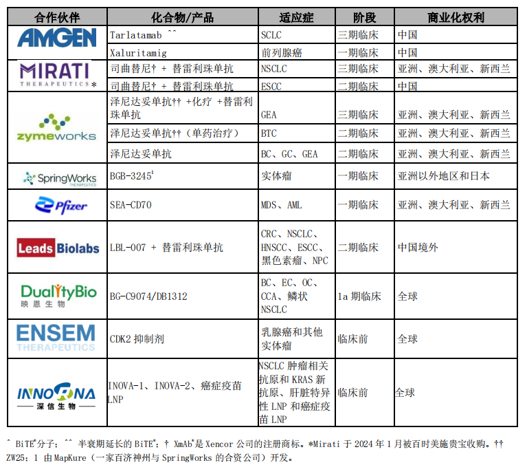 下表概述截至 2024 年 2 月 26 日公司授权引进的候选药物情况: