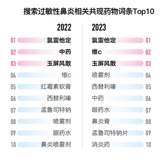 在抗过敏领域,有一个特殊的群体被称为“氯雷他定人”,他们因对氯雷他定药物的依赖而备受关注。百度数据显示,2022和2023年搜索过敏性鼻炎相关共现药物词条中,氯雷他定始终占据第一名。