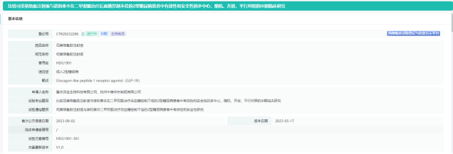 DR10624已于2023年7月在新西兰完成了治疗肥胖症的I期多次递增剂量给药(MAD)临床试验的首例受试者给药。8月31日,DR1062在国内也启动了评价DR10624单次和多次皮下给药、剂量递增的安全性、耐受性、药代动力学和药效学的随机、安慰剂对照、双盲、Ⅰ期研究,适应症为超重或肥胖人群的体重管理(登记号:CTR20232684)。