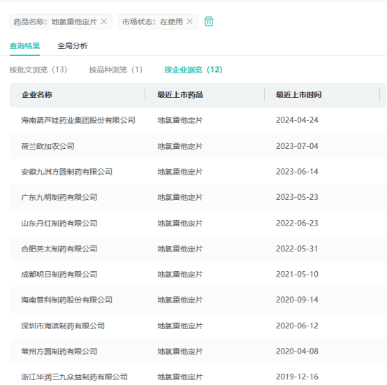 地氯雷他定片目前也有浙江华润三九众益制药、海南普利制药、广东九明制药深、圳市海滨制药等超10家国内药企获得生产批文。
