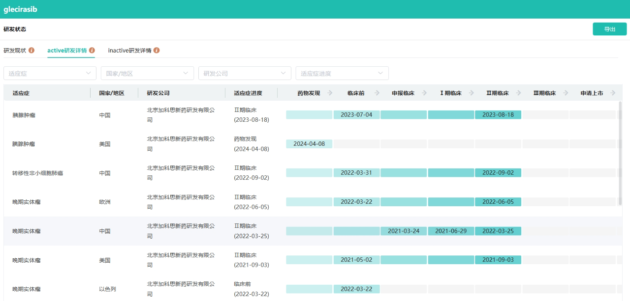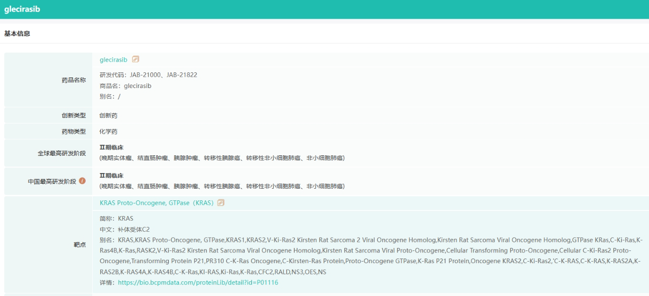 glecirasib研发状态(部分)信息