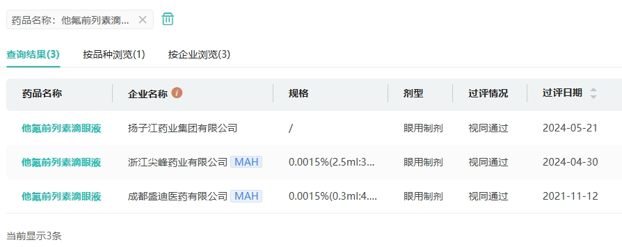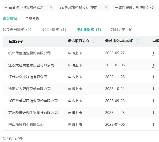 在仿制药布局方面,他氟前列素滴眼液有杭州民生药业、江苏安必生制药、陕西丽彩药业等7家药企提交了新注册仿制申请,均在审评审批中。