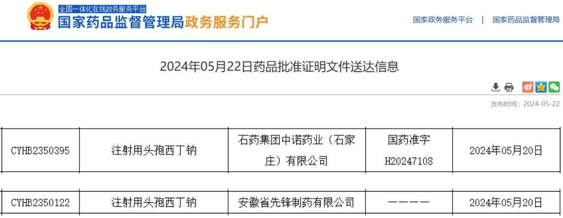 5月22日,据NMPA官网公示,其中,注射用头孢西丁钠迎来2家药企同日过评,分别是石药集团中诺药业和安徽省先锋制药。据药融云数据统计,该品种在2022年全国院内销售额超12亿元。