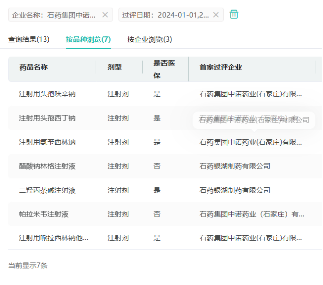 目前石药集团中诺药业有20款药品过评,今年(截止5月22日)有注射用头孢呋辛钠、注射用头孢西丁钠、注射用氨苄西林钠等7个品种过评。