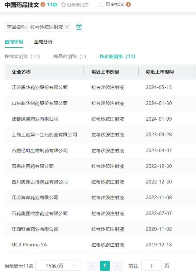 此外,在国内除原研,已有10家本土企业获得了拉考沙胺注射液的生产批文,包括江苏恩华药业、石药欧意、扬子江药业、石四药、亿帆生物、海南合瑞制药、成都通德药业等。