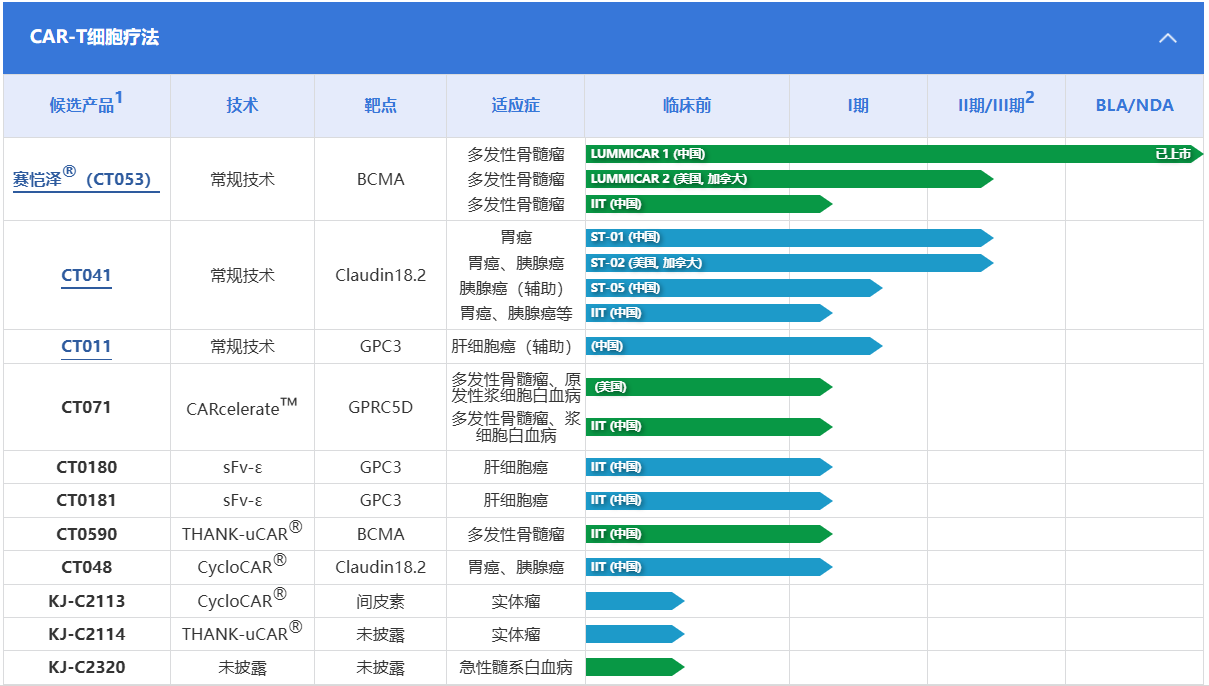 科济药业CAR-T研发管线