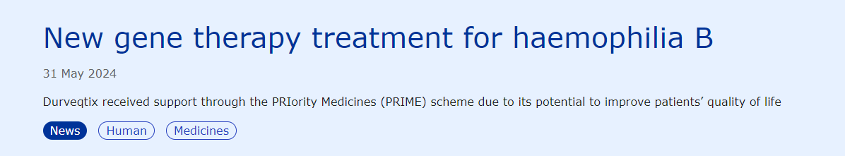 参考资料:https://www.ema.europa.eu/en/news/new-gene-therapy-treatment-haemophilia-b