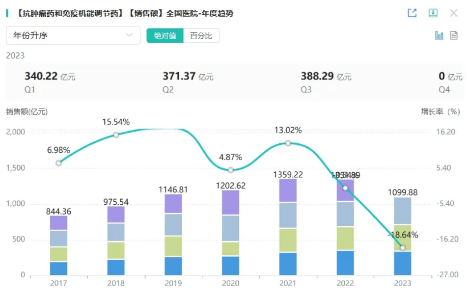 注射用HDM2005是由杭州中美华东制药研发并拥有全球知识产权的1类生物新药,是一款靶向受体酪氨酸激酶样孤儿受体 1(ROR1)的抗体偶联药物(ADC)。临床前研究显示,HDM2005进入体内后,抗体部分与表达肿瘤抗原的靶细胞特异性结合,HDM2005被肿瘤细胞内吞后,细胞毒素在胞内释放,从而完成对肿瘤细胞的杀伤;现有数据显示HDM2005具有良好的成药性和安全性。 据药融云数据库显示,抗肿瘤药和免疫调节药在全国院内市场销售峰值超千亿元,2022年全国院内销售额超1300亿元。