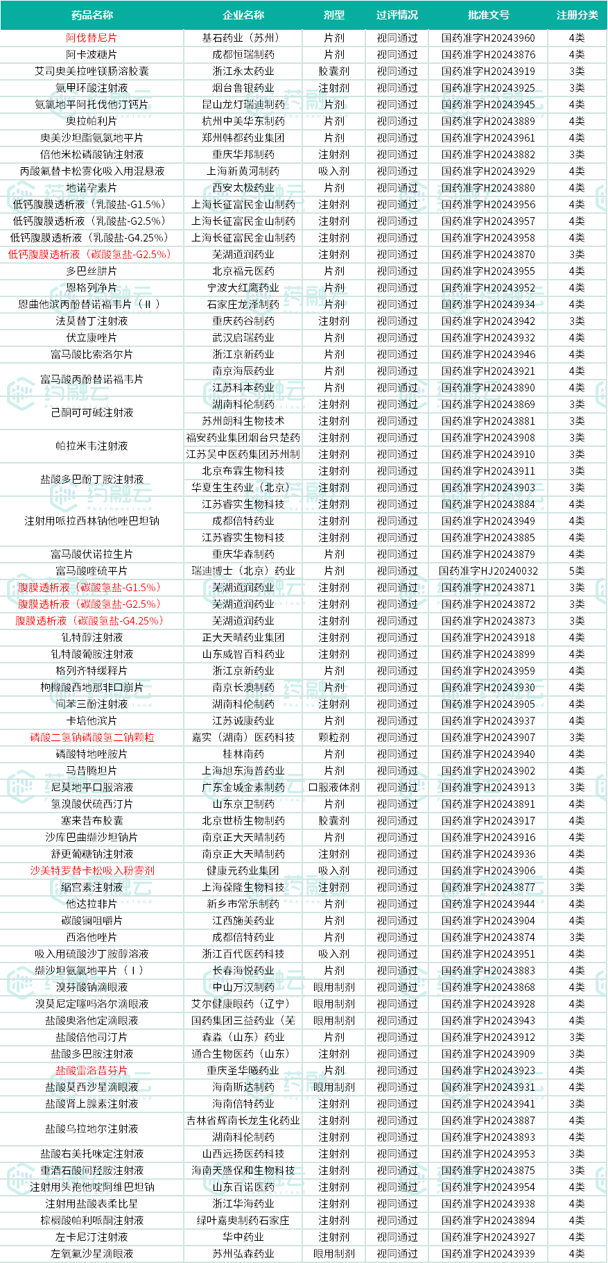 此外,阿伐替尼片、低钙腹膜透析液(碳酸氢盐-G2.5%)、腹膜透析液(碳酸氢盐-G1.5%)、腹膜透析液(碳酸氢盐-G2.5%)、腹膜透析液(碳酸氢盐-G4.25%)、磷酸二氢钠磷酸氢二钠颗粒、沙美特罗替卡松吸入粉雾剂、盐酸雷洛昔芬片8个品种迎来首家过评。更多过评信息详情见下方表格。