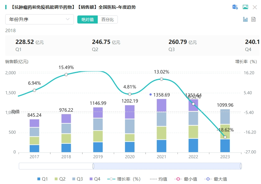 6月11日,据CDE官网显示,海思科的1类新药HSK42360片获得临床试验默示许可,用于治疗BRAF V600突变晚期实体瘤。据药融云数据库显示,在全国院内抗肿瘤药和免疫机能调节药物市场销售额峰值超千亿元。