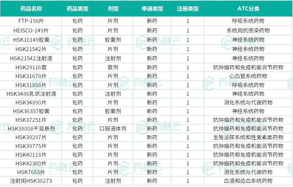 除此次HSK42360片获得临床试验默示许可,公司还拥有HSK-29116散、HSK39775片、HSK37251片、HSK38008干混悬剂、HSK40118片等5款抗肿瘤1类新药。