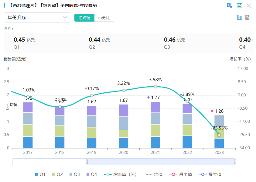 西洛他唑片最早由日本大冢制药株式会社研发,主要用于改善由于慢性动脉闭塞症引起的溃疡、肢痛、冷感及间隙性跛行等缺血症状。于1988年在日本上市,1999年美国FDA批准西洛他唑作为治疗稳定性间歇性跛行的药物上市。2015年在中国上市,商品名“培达”。据药融云数据库显示,西洛他唑片在2022年全国院内销售近2亿元。
