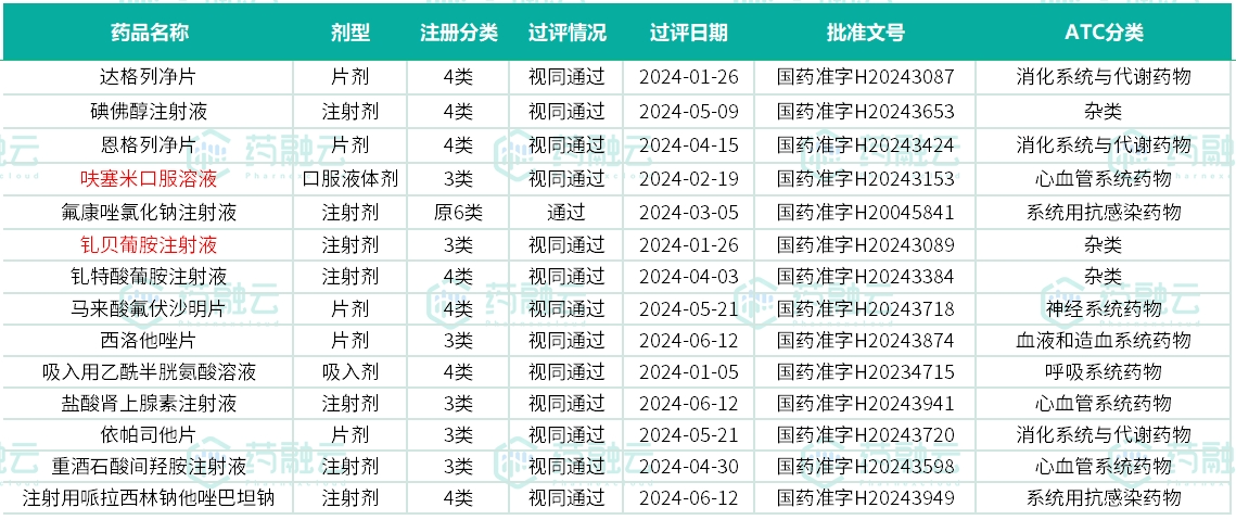 截图来源:药融云过评药品汇总+中国药品审评数据库