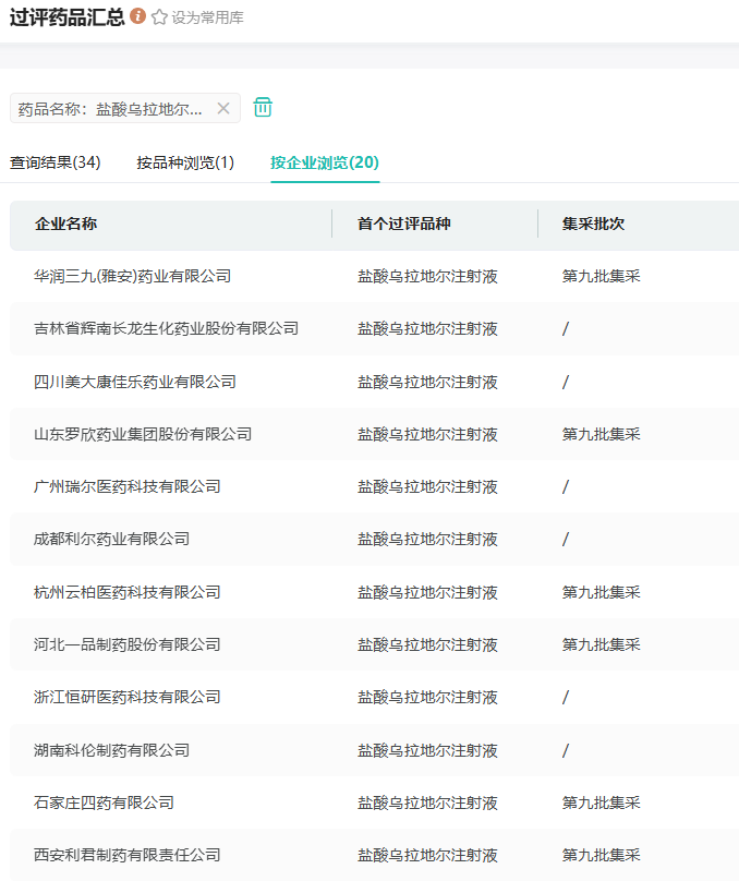 目前,盐酸乌拉地尔注射液24家药业拥有生产批文,其中石家庄四药、湖南科伦制药、华夏生生药业等20家药企过评。