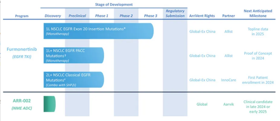 此前ADC初创企业Aarvik的ARR-002候选产品之前被Arrivent Biopharma引进开发,目前在临床前研发阶段。预计最快在2024年晚些时候递交IND。
