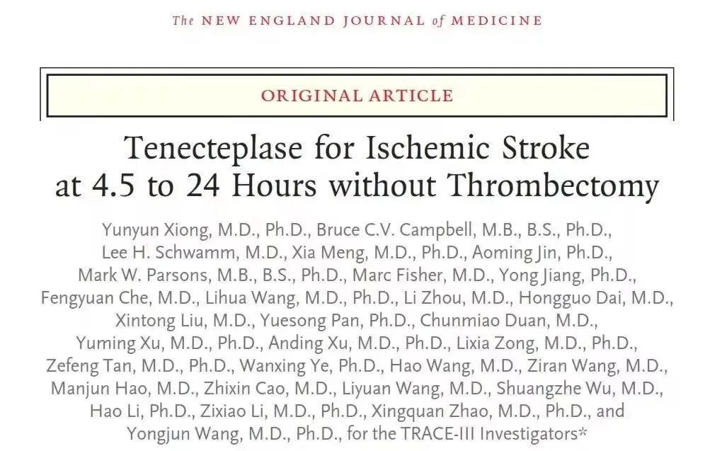这是明复乐继2023年2月TRACE-II研究发表在柳叶刀之后,又一项重磅临床研究发表在医学顶级期刊。这一成果由首都医科大学附属北京天坛医院王拥军教授团队与国内外专家共同完成了TRACE-III研究。