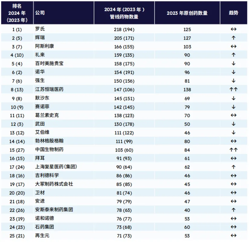 石药集团不仅在创新药物研发上取得了显著成果,其研发管线也取得了长足进步。近期,国际知名咨询机构Citeline发布的《2024医药研发趋势年度回顾白皮书》显示,石药集团等4家中国药企进入全球研发管线数量TOP25。其中,石药集团以73款药物管线数量位列第24位,这一成绩不仅是对其研发能力的肯定,也再次证明了其在全球医药研发领域的竞争力。