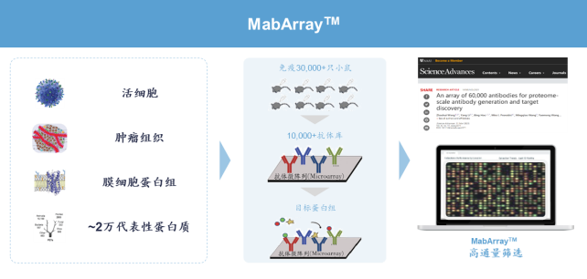 MabArray 工业级抗体芯片平台为普众发现的核心技术,凭借10万级超高密度抗体芯片库,普众发现可以实现传统方法无法完成高分辨率抗原筛选,并识别高难度抗原如多次跨膜,特殊构象,糖蛋白等,一次性覆盖人类细胞表面膜蛋白(潜在药靶)~50%,推动细胞表面抗原识别抵达新境界。
