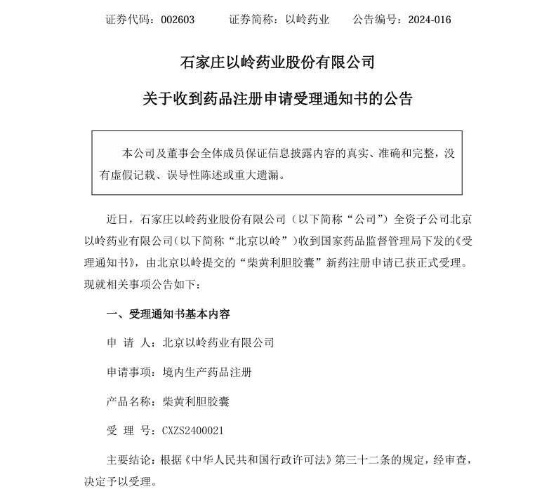 [2] 以岭药业官方披露/公告