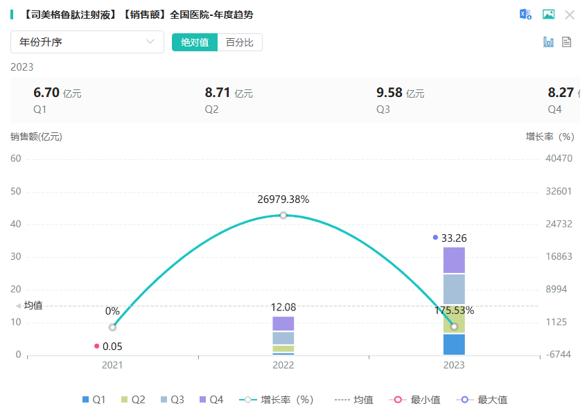 全球首个且目前唯一,可实现平均17%的体重降幅的司美格鲁肽,一经问世便引发了医疗界和市场的广泛关注。这一突破性的药物通过全球大型临床研究STEP系列,验证了其显著的减重效果。与安慰剂相比,司美格鲁肽治疗不仅具有更优效、临床意义的体重减轻,而且体重降低幅度平均达到惊人的17%(相当于16.8kg),并且这种效果可以持续长达16个月。据药融云数据库最新数据显示,司美格鲁肽注射液在2023年全国院内市场的销售额已突破33亿元,同比增长高达175.53%,再次证明了其卓越的市场潜力和广泛的临床需求。
