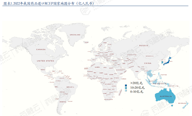2022年我国从RCEP国家进口药品金额及地图分布
