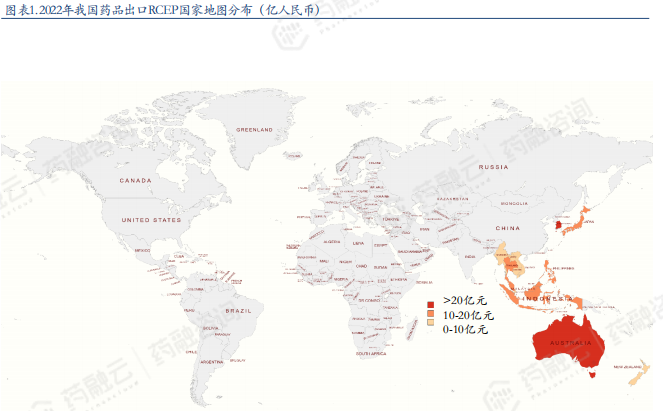 2022年我国和RCEP国家药品外贸金额及地图分布