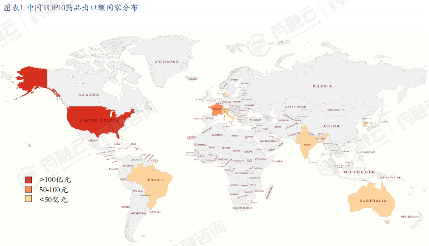 中国TOP10药品出口额国家分布