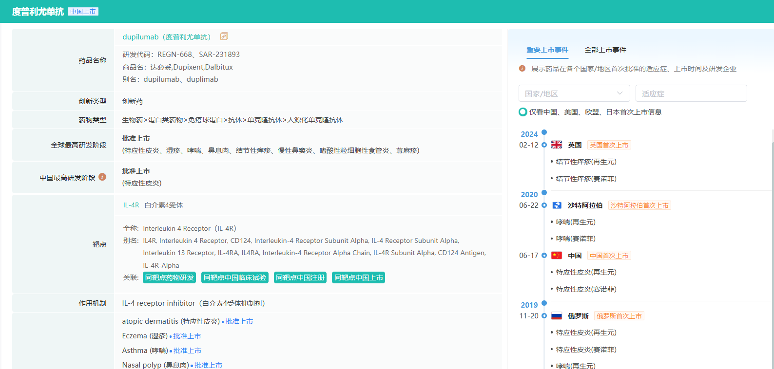 想要解锁更多药物研发信息吗?查询药融云数据库(vip.pharnexcloud.com/?zmt-mhwz)掌握药物基本信息、市场竞争格局、销售情况与各维度分析、药企研发进展、临床试验情况、申报审批情况、各国上市情况、最新市场动态、市场规模与前景等,以及帮助企业抉择可否投入时提供数据参考!注册立享15天免费试用!