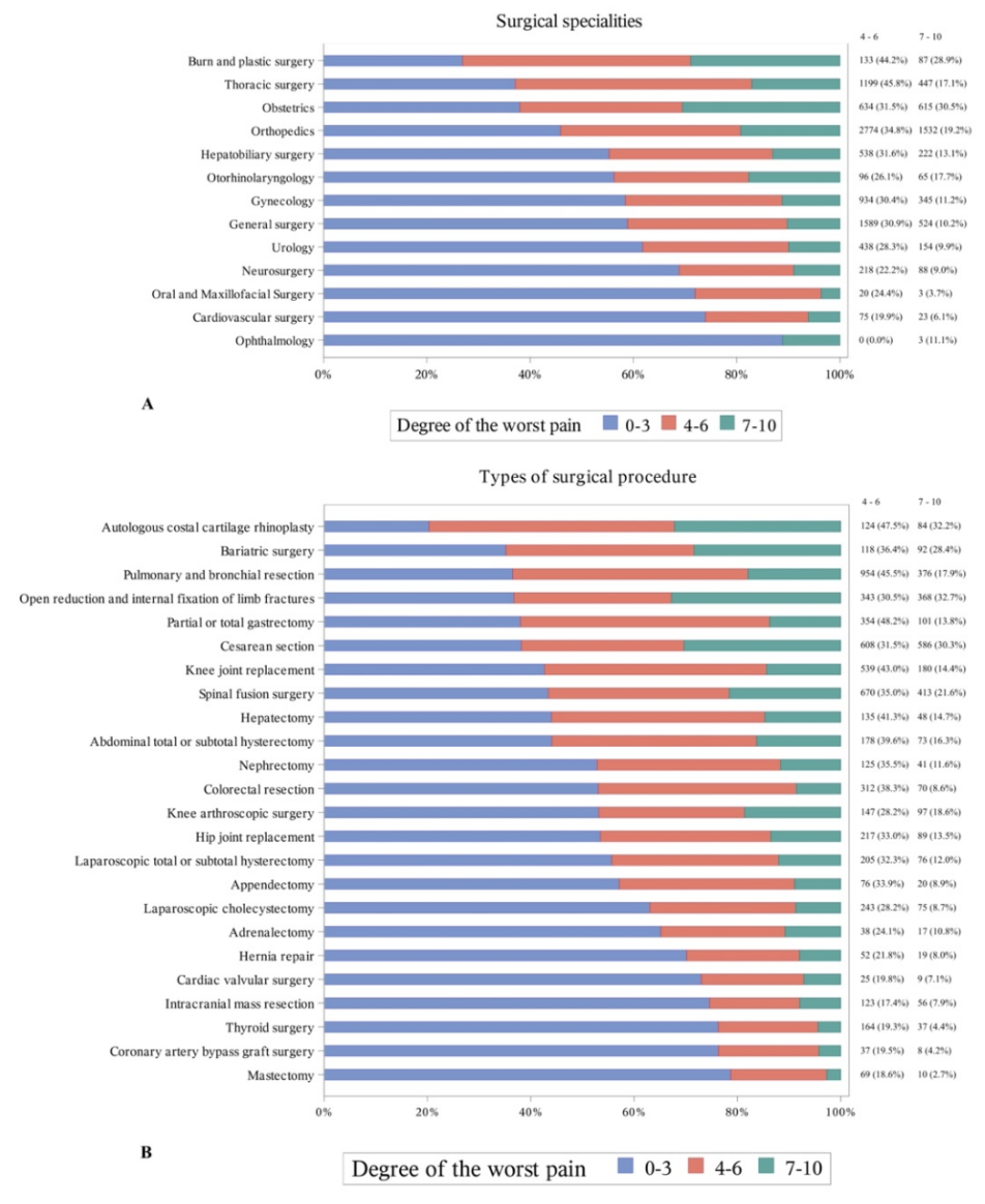术后疼痛为最常见的急性疼痛,对患者的手术康复具有极其重要的影响。解放军总医院第一医学中心麻醉科米卫东教授团队在2023年7月发表于《柳叶刀》子刊《柳叶刀——区域健康(西太平洋)》(The Lancet regional health-western pacific)的有关中国急性术后疼痛(CAPOPS)的报道指出,中国手术患者术后发生中重度急性疼痛高达48.7%。在不同手术类型中,中重度疼痛的发生率最高的患者分别来自烧伤和整形外科(73.1%)、胸外科(62.9%)、产科(62.0%)以及骨科(54.1%),这些数据提示了术后疼痛管理的迫切需求。