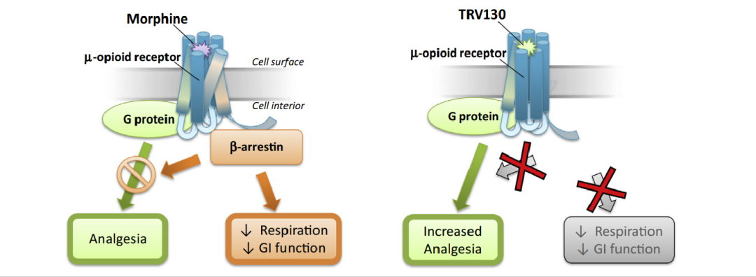 关于G蛋白偏向性μ阿片受体/MOR激动机制新药: