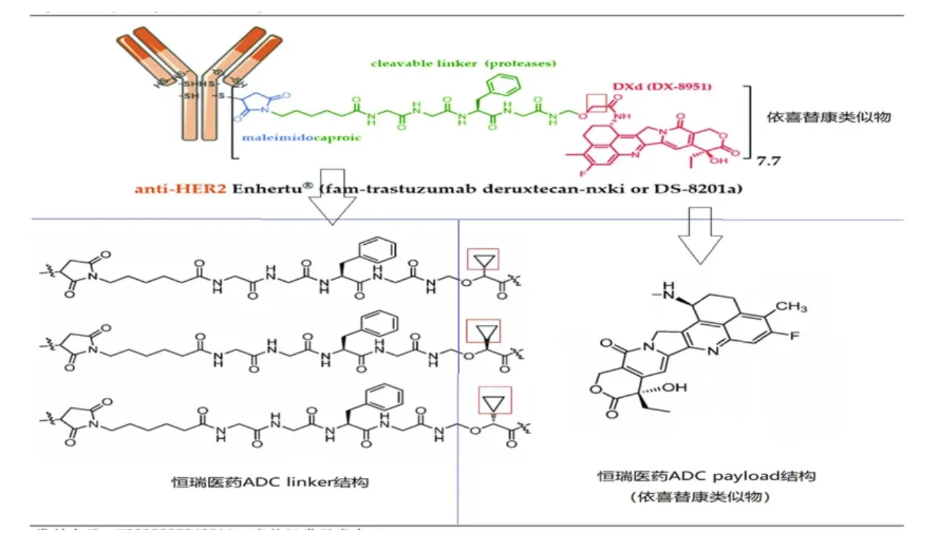 注射用SHR-A1811是恒瑞医药自主研发的、以HER2为靶点的抗体偶联药物,由重组人源化抗HER2 IgG1单抗、可酶切的含马来酰亚胺四肽(GGFG)的连接子以及DNA 拓扑异构酶I抑制剂9106-IM-2偶联而成。SHR-A1811的平均药物抗体偶联比(Drug-Antibody Ratio, DAR)为5.7±0.4。