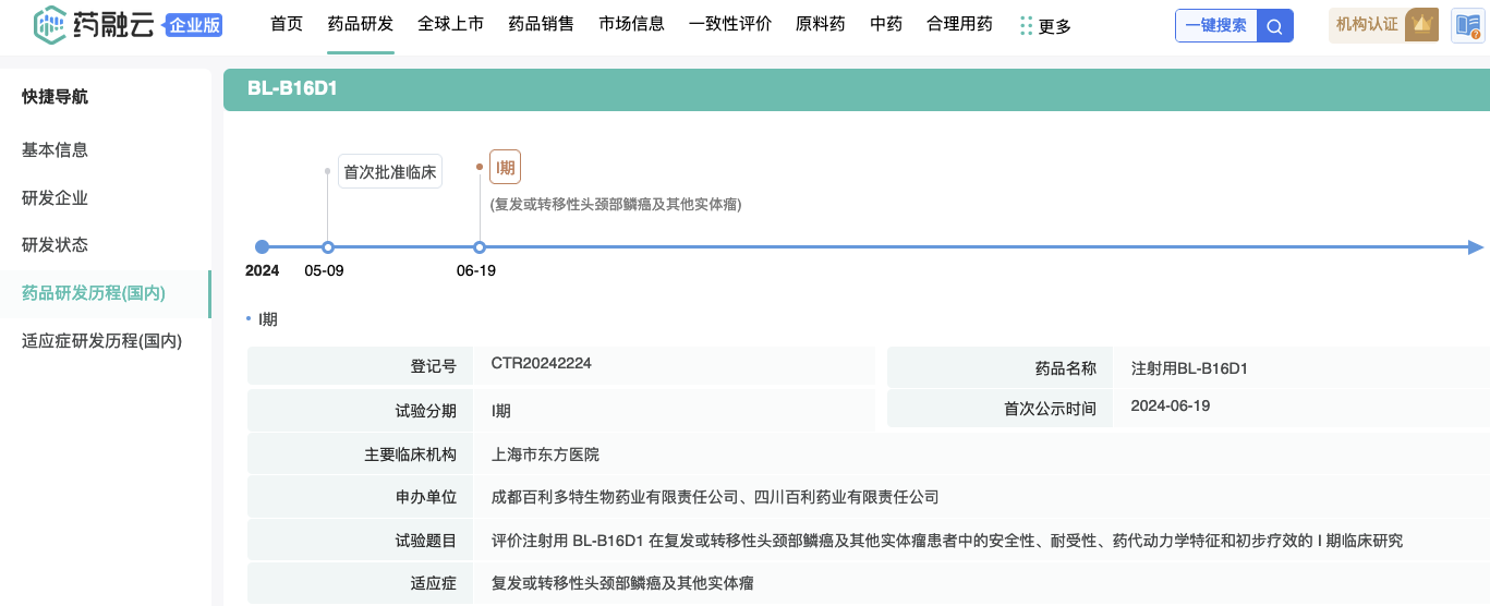 https://data.eastmoney.com/notices/detail/688506/AN202406211636769946.html;Ma Y, Huang Y, Zhao Y, Zhao S, Xue J, Yang Y, Fang W, Guo Y, Han Y, Yang K, Li Y, Yang J, Fu Z, Chen G, Chen L, Zhou N, Zhou T, Zhang Y, Zhou H, Liu Q, Zhu Y, Zhu H, Xiao S, Zhang L, Zhao H. BL-B01D1, a first-in-class EGFR-HER3 bispecific antibody-drug conjugate, in patients with locally advanced or metastatic solid tumours: a first-in-human, open-label, multicentre, phase 1 study. Lancet Oncol. 2024 May 29:S1470-2045(24)00159-1. doi: 10.1016/S1470-2045(24)00159-1. Epub ahead of print. PMID: 38823410;等等。