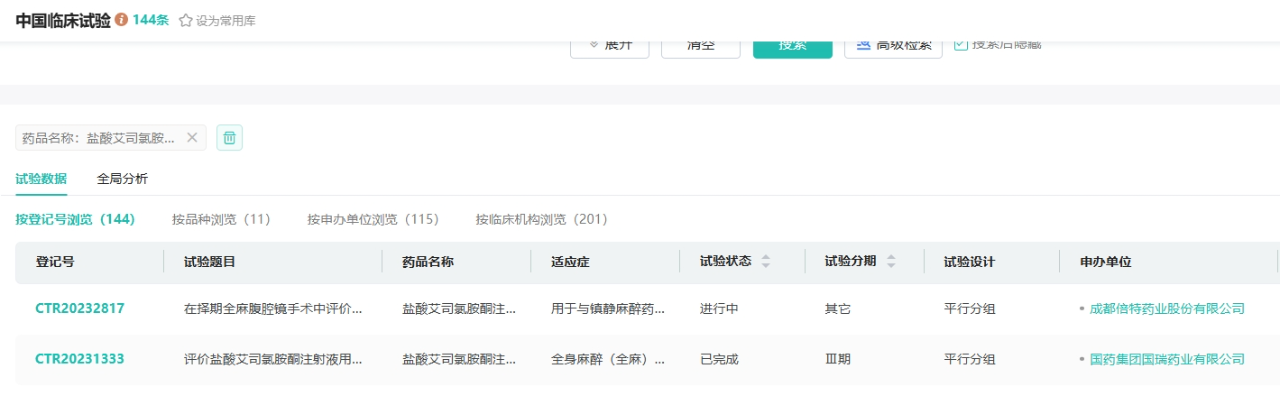 目前,恒瑞医药独占市场的局面已被扬子江药业和宜昌人福药业打破,麻醉剂三大寡头接下来会如何发力,业界拭目以待。不仅如此,国药集团国瑞药业和成都倍特药业的盐酸艾司氯胺酮注射液也进入了临床试验阶段。不难预见,该品种未来的市场竞争将愈发白热化。