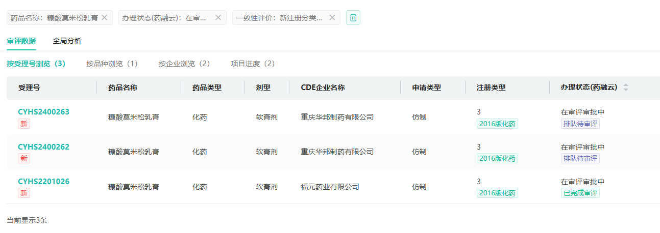 截图来源:药融云中国药品审评数据库