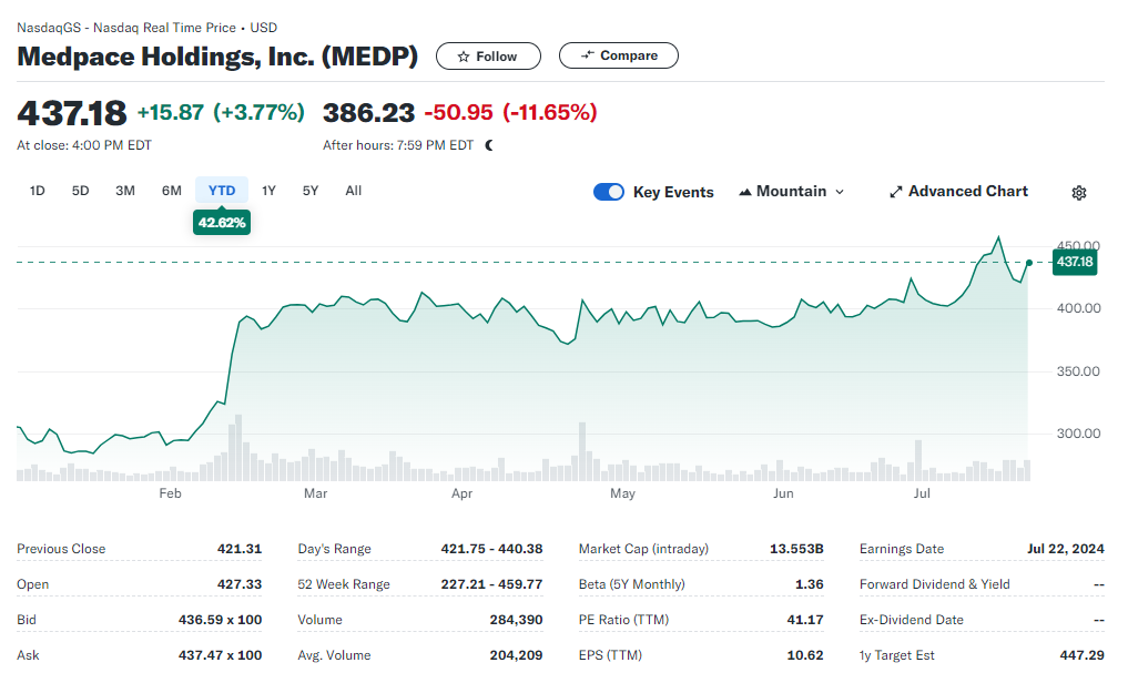 近半年来,Medpace的股价涨超40%,目前市值135.53亿美元。