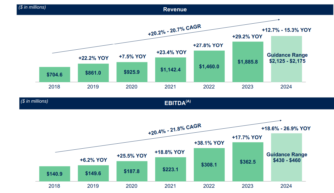 截止到2024年6月30日,公司现金及现金等价物为5.1亿美元(37亿元),环比增长25%。公司预测2024年收入在21.25亿至21.75亿美元之间,比2023年的18.86亿美元收入增长12.7%~15.3%。