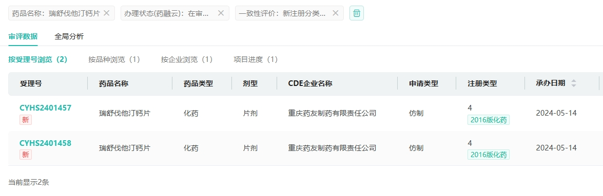 截图来源:药融云中国药品审评数据库